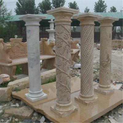大理石花崗巖浮雕花紋歐式羅馬柱庭院裝飾擺件