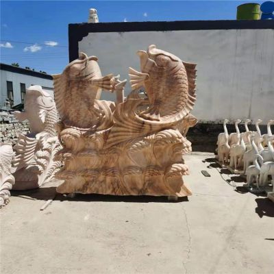 晚霞紅雕刻招財(cái)進(jìn)寶三羊開泰 公園動物景觀石