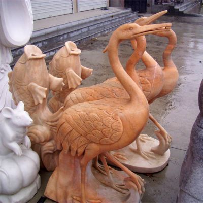 公園庭院大型動(dòng)物景觀晚霞紅石雕丹頂鶴雕塑