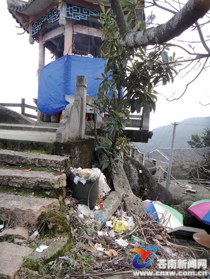 昨天下午,天氣晴好,同朋友前去縣城近郊的石聚堂景區(qū)小游,豈料登到招牌景點——九折龍?zhí)帟r,見該景點已是面目全非,到處是垃圾,與其緊挨的望蒼亭竟被一家農家排檔公然挪為私用,成為“一號”包廂。如此一來,讓買票進入景區(qū)的游客,何以賞悅山中美景?為此,拍下一組照片,以提醒有關部門務必加強管理,別讓蒼南形象如此不堪!