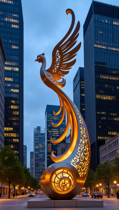 大型不銹鋼鏤空發(fā)光鳳凰雕塑