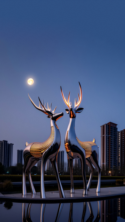 鏤空發(fā)光不銹鋼梅花鹿雕塑