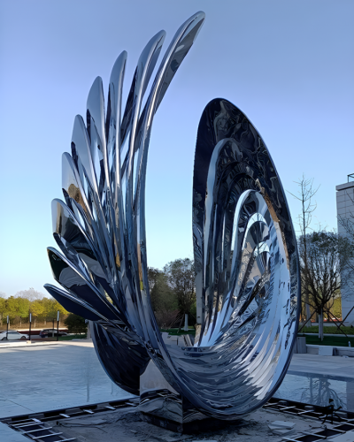 抽象鏡面不銹鋼翅膀羽毛雕塑