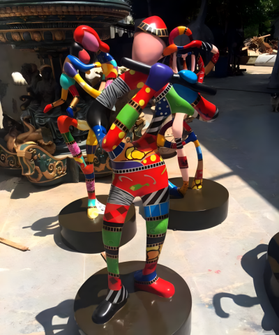 玻璃鋼彩繪吹笛子的抽象人物雕塑