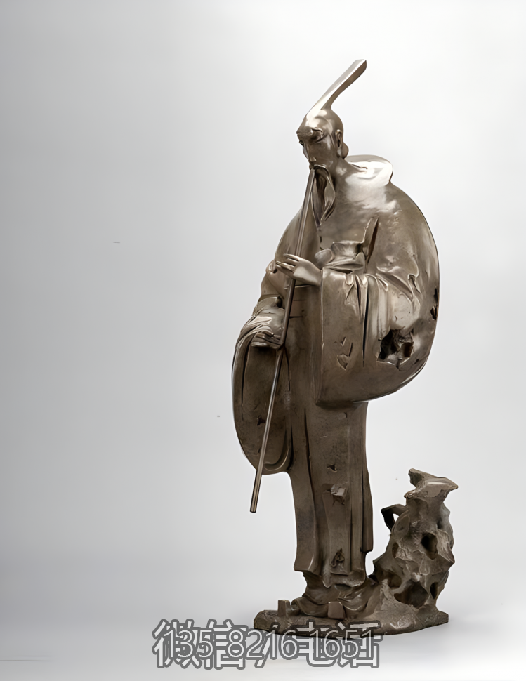 玻璃鋼仿銅創(chuàng)意玻璃鋼抽象吹簫的人物雕塑