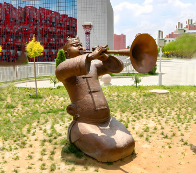 城市景觀吹嗩吶的人物銅雕塑