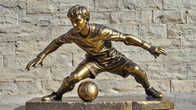 鑄銅踢球少年雕塑