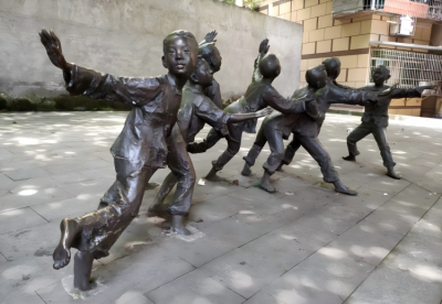 老鷹抓小雞童趣人物情景雕塑