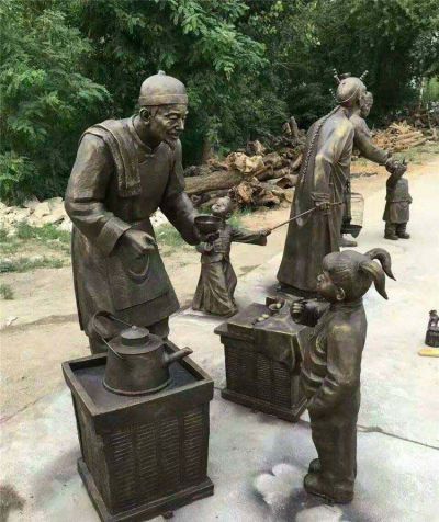 城市廣場景觀黃銅景觀吹簫的人物雕塑